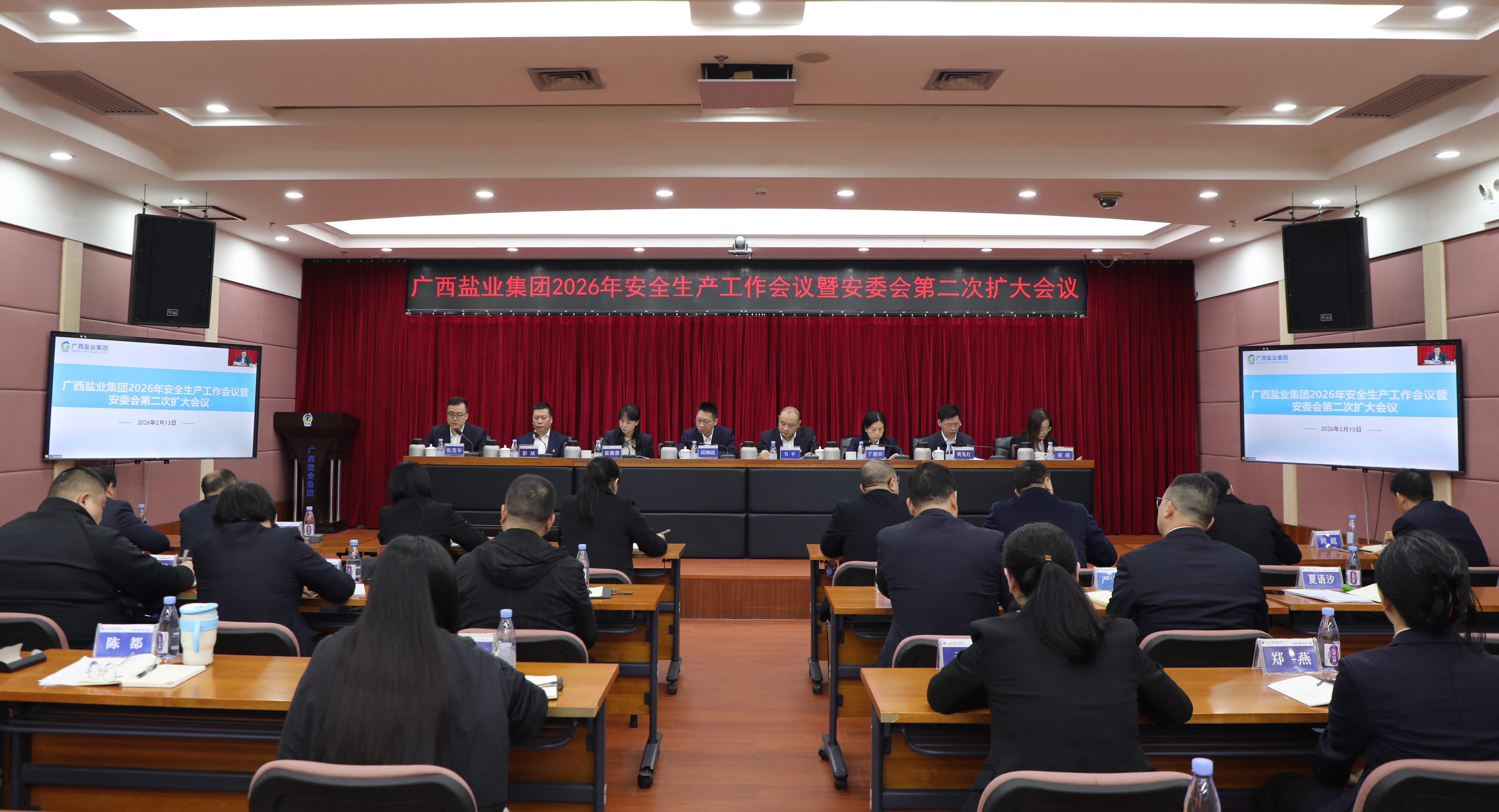 2月13日,广西金年会官方网站入口集团召开2026年安全生产工作会议暨安委会第二次扩大会议。集团公司党委书记、董事长、安委会主任邱潮涌主持会议并讲话,集团公司党委副书记、副董事长、总经理、安委会主任韦平出席会议,集团公司副总经理、安委会常务副主任张茂华作安全生产工作报告。
